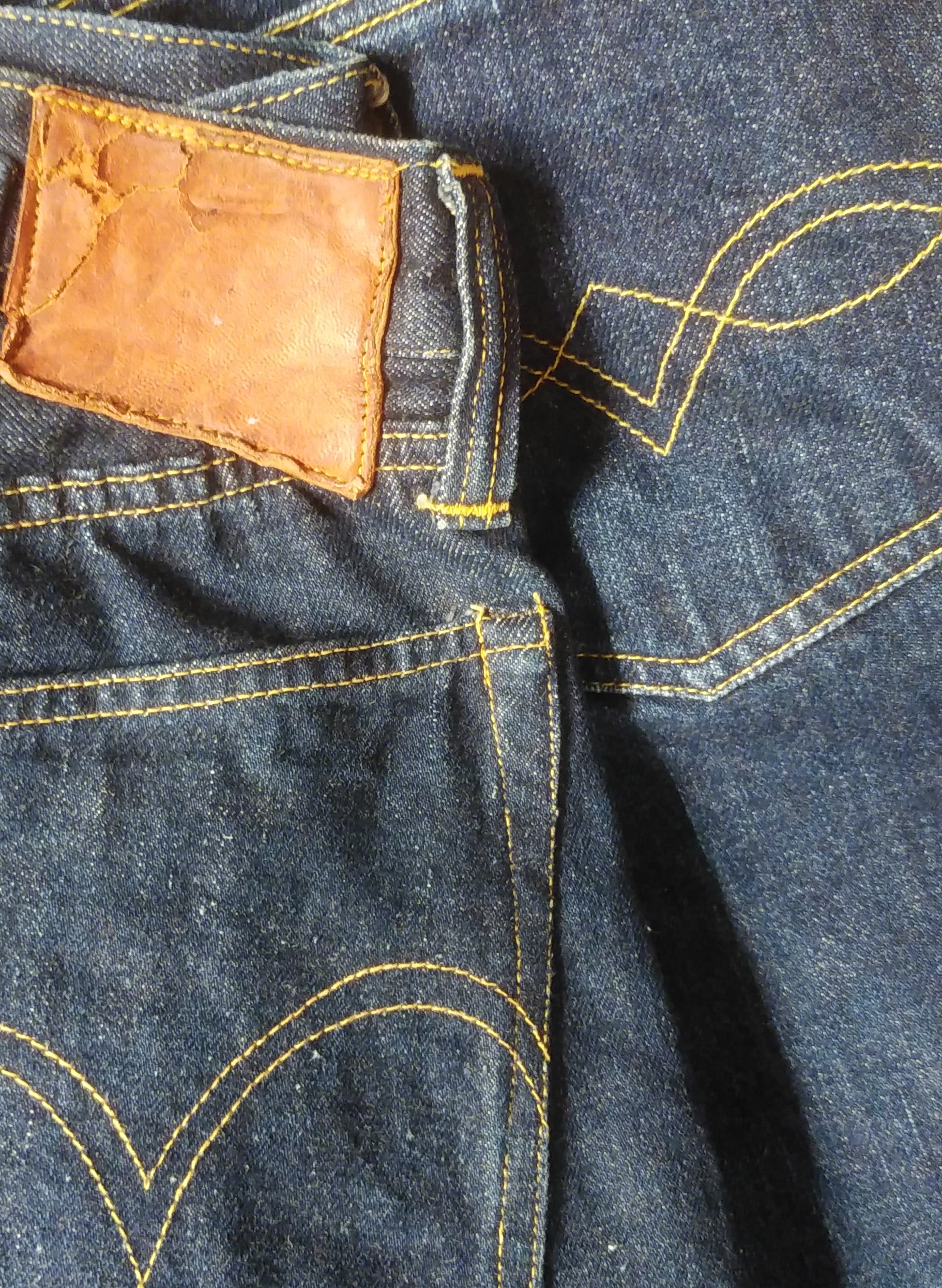 We were able to confirm the desired discoloration after 6 months of trial wear from October 2019. The aging of cotton thread and selvedge denim is the charm of American classics.